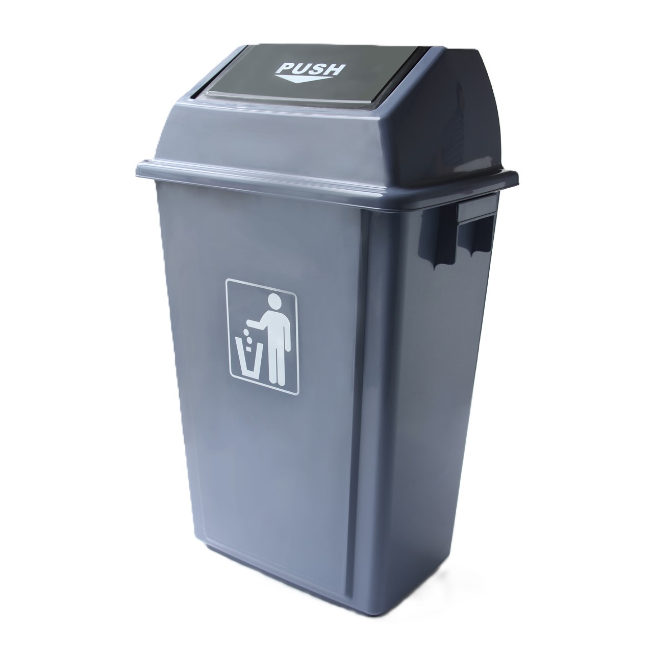 Wirtschaftlicher Abfallbehälter für den täglichen Gebrauch aus Polypropylen, zentraler Deckel mit beidseitiger Öffnung. Korbvolumen 58 l. 47 x 33,5 x 77 cm