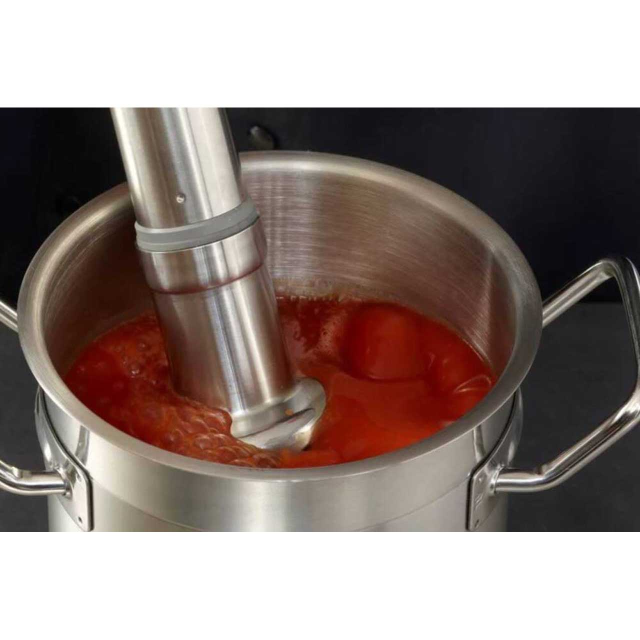 - Edelstahlmesser zur Zubereitung von Suppen, Cremesuppen und Soßen.