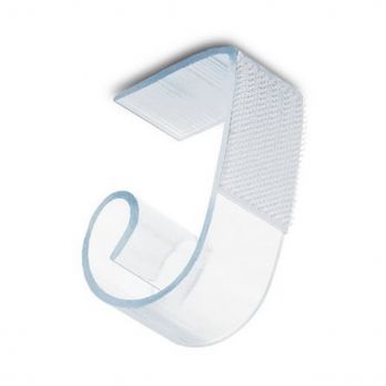 Universeller Bankettclip zur Befestigung von Bankettschürzen (Sockelleisten) für eine Tischplatte mit einer Stärke von 30 bis 60 mm. Farbe klar, Material Kunststoff.