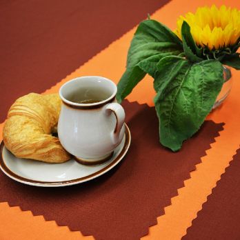 Teflon-Tischdecke 140 x 180 cm. Auf Anfrage in verschiedenen Farben erhältlich. Teflon-Tischdecken sind klassische Polyester-Tischdecken, die mit einer dünnen Schicht Teflon behandelt wurden, wodurch ein wasserabweisender Effekt erzielt wird. Teflon-Tischdecken nehmen keine Flüssigkeiten auf, auch keinen Kaffee, Tee oder Wein. Verschüttete Flüssigkeit bleibt auf der Oberfläche der Teflon-Tischdecke haften und lässt sich leicht mit einer Serviette oder einem Tuch abwischen. Dies gilt nicht für Fette. Dadurch bleiben Teflon-Tischdecken länger sauber und ohne die Flecken, die Sie von klassischen Tischdecken kennen, was den Pflegeaufwand deutlich reduziert. Die Pflege von Teflon-Tischdecken ist einfach, sie können in einer normalen Waschmaschine bei 30 °C gewaschen werden. Teflon-Tischdecken trocknen nach dem Waschen schnell. Teflon-Tischdecken müssen gebügelt werden, um ihre wasserabweisenden Eigenschaften zu behalten. Teflon-Tischdecken bügeln wir im Synthetik-Programm. Gewicht 175g/m2.